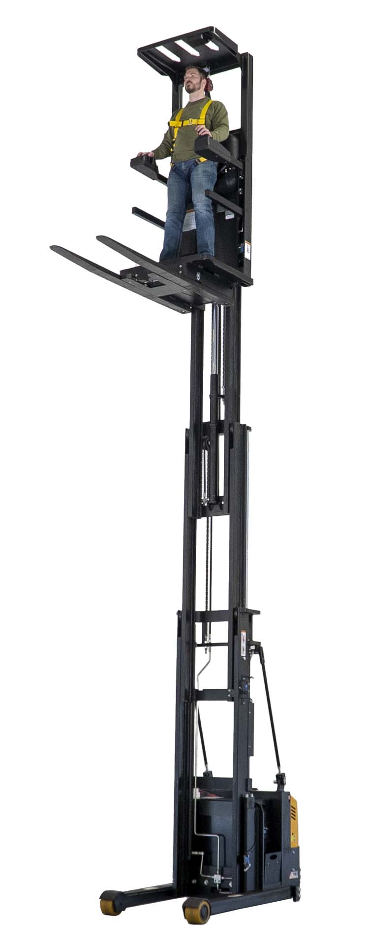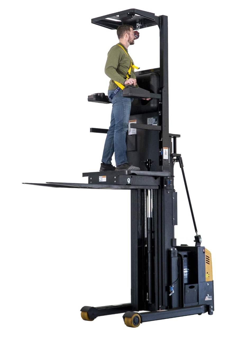 J2 Low Level Order Picker can be used to effectively order pick from low level locations and improve access to pick faces close to the floor. Travel is provided by a high efficiency AC drive motor on each unit that can be programmed through the onboard LCD dash. Power comes from a 340AH industrial battery or 224AH AGM maintenance free battery pack that is an available option.