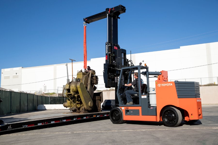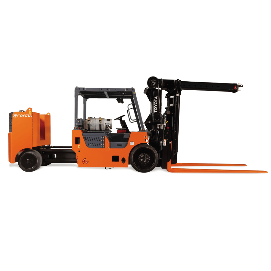 The Toyota High-Capacity Forklift with Adjustable Wheelbase is a master of flexibility. This sit down counterbalanced forklift allows operators to make adjustments to varying load weights with an extendable counterweight that includes removable slabs. Need to move a big, awkward item? The multi-stage telescopic boom is able to safely and efficiently move large equipment such as industrial machinery or massive engines.