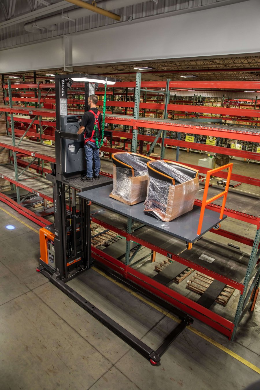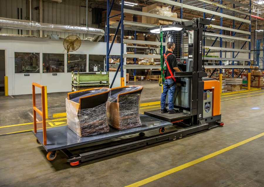From couches to dining room tables, the Toyota Furniture Order Picker is designed to handle your pallet-less tasks. The Furniture Order Picker can accommodate carts or furniture platforms and lift a wide variety of large or bulky items. In addition to maximizing space and excellent performance, you’re getting a high-performance lift with superior ergonomics, enhanced visibility, and an all-around power player that can take your fleet to another level.