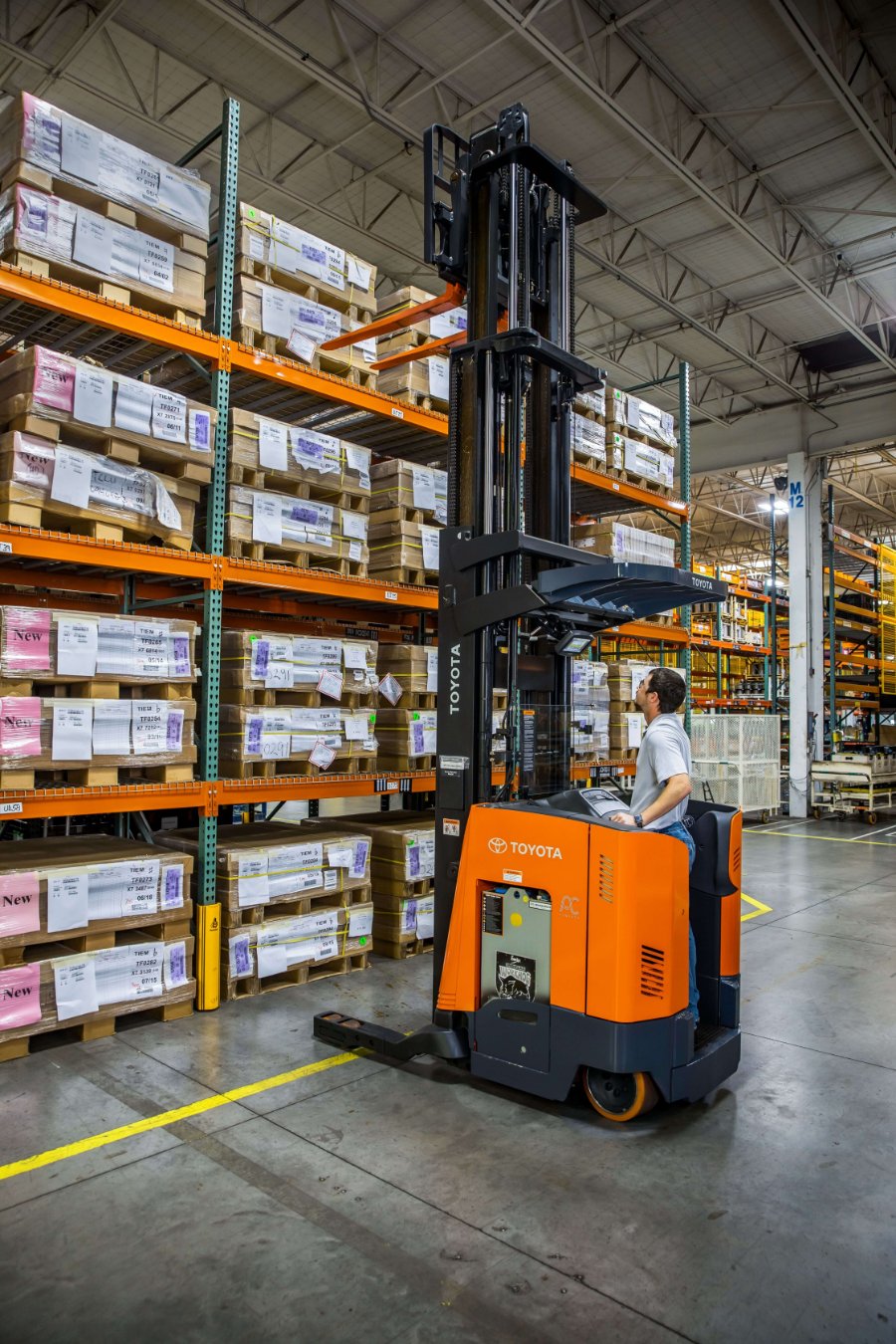 Toyota’s Electric Reach Truck delivers on efficiency and performance like never before. This reach truck comes with unique features coupled with the longstanding productivity, ergonomics, and low cost of ownership you expect from Toyota. The Toyota Reach Truck provides optimal visibility when reaching a second-level pallet position. The open view mast utilizes a 4-cylinder design to maximize forward visibility. Rigid mast construction helps minimize mast sway for precise load handling at maximum lift heights. This reach truck enables you to reach higher, work smarter, and be comfortably productive whether you’re moving from dock-to-stock, stock-to-dock, or anywhere in between.