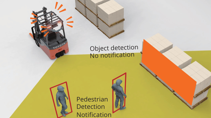 Notification Alerts - Visual and audible notifications alert the operator when a pedestrian or object enters the detection range